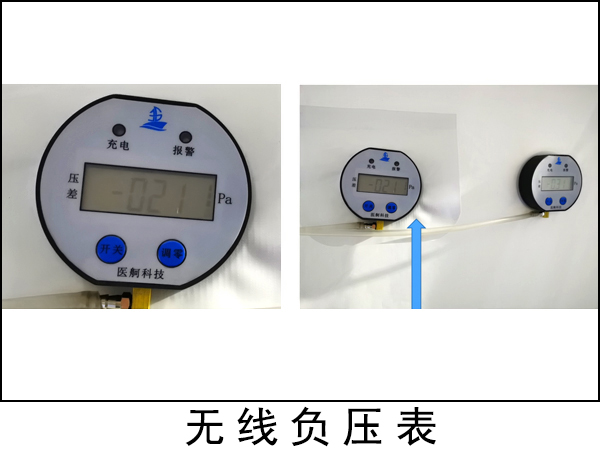 負壓表采用無線方式,安裝便捷,可同時監測工作帳篷內部、緩沖間內部負壓值