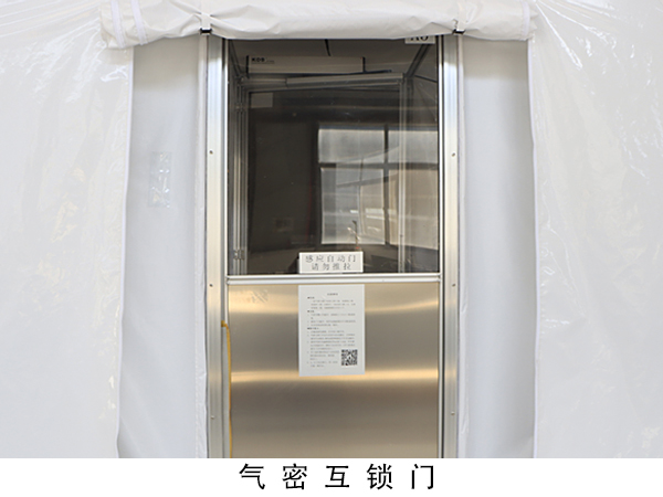 具有獨立支撐結構的緩沖間,人員進出緩沖間自動調整運行狀態,可保證工作帳篷內負壓值穩定